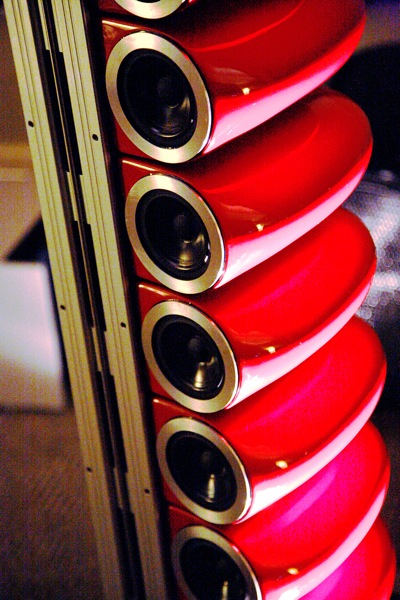 The Super Maggie System: two 20.1 speakers ($12,990), two 3.6 speakers (rear channels ($10,000), two CC-2 center channels ($995 each) with five Nola Thunderbolt Woofers, ($1995 each)